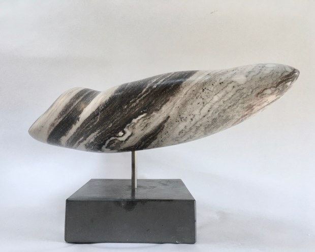 Abstract Ovoid Ovoid ~ Vermont Marble ~ 30” high Cycladic Head Maquette Cycladic Head Maquette ~ Black Belgium Marble ~ 6″ high Cycladic Head Cycladic Head ~ Carrera Marble ~ 30″ high Enigmatic Torso in African Wonder Stone African Wonder Stone ~ Enigmatic Torso (front view) ~ 12″ high African Wonder Stone ~ Enigmatic Torso (back view) ~ 12″ high Cetacean in Belgium Black Marble Cetacean ~ Belgium Black ~ Spanish Marble Base ~ 26″ long Marble Egg Marble Egg ~ Roho Alicante ~ 4′ tall Birds in Flight Birds in Flight ~ Utah Peach Alabaster ~ 39” wingspanBirds in Flight ~ Utah Peach Alabaster ~ 14” wingspan
